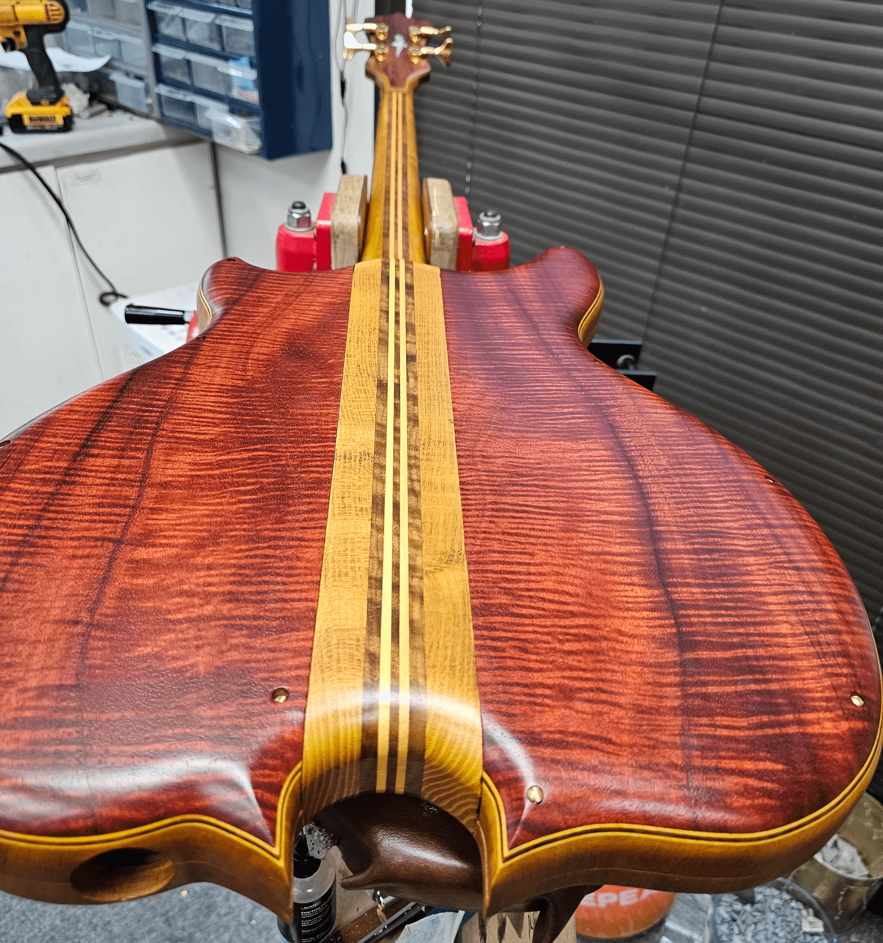 A second non-refundable 1/3 deposit is collected upon paint and fretting completion